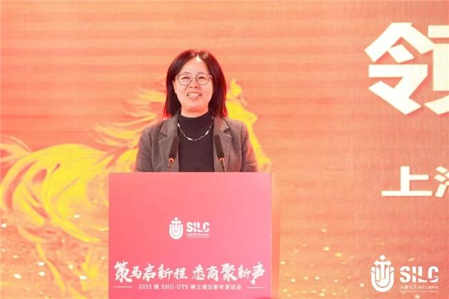 活动在悠扬婉转的暖场音乐中缓缓拉开序幕。致辞环节,学院党委书记吕康娟向全体师生致以诚挚的新年问候。她回顾了SHU-UTS硕士项目“连接中外、赋能成长”的办学历程,并勉励大家在新的一年中珍惜时光、携手同行,在跨文化的学术环境中不断成长、共绘未来。